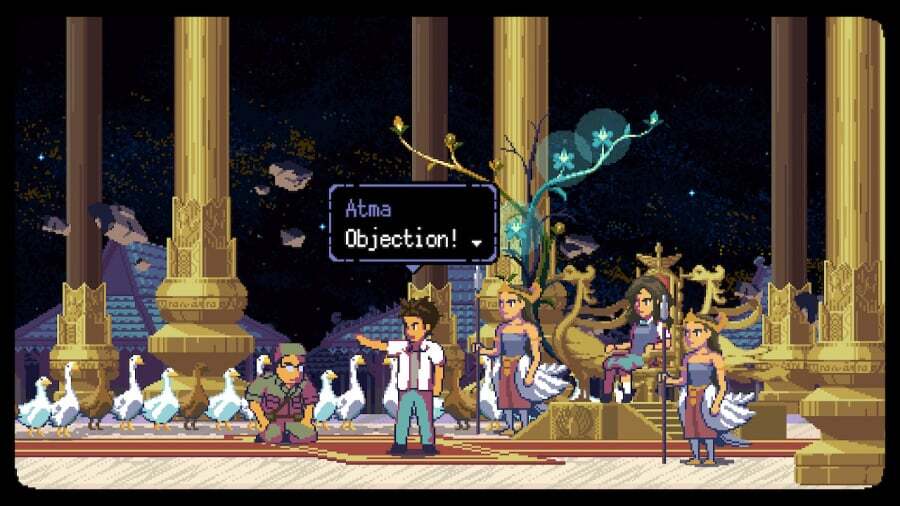 다행스럽게도 Loka 주민들의 마음에는 많은 수수께끼가 있습니다. Atma는 자신의 특별한 공책을 사용하여 머리 속으로 '우주 잠수'할 수 있습니다. 여기에는 몇 분 동안 우리를 당황하게 했던 훨씬 더 매력적인 논리 퍼즐과 몇 가지 유쾌한 미니 게임 및 창의적인 Phoenix Wright 와 같은 교차 시험 시퀀스가 포함되어 있습니다. 대화를 건너뛰기 위한 터치스크린 지원이 포함되어 있지만 우리가 말할 수 있는 움직임이나 무수한 미니 게임은 지원하지 않습니다.