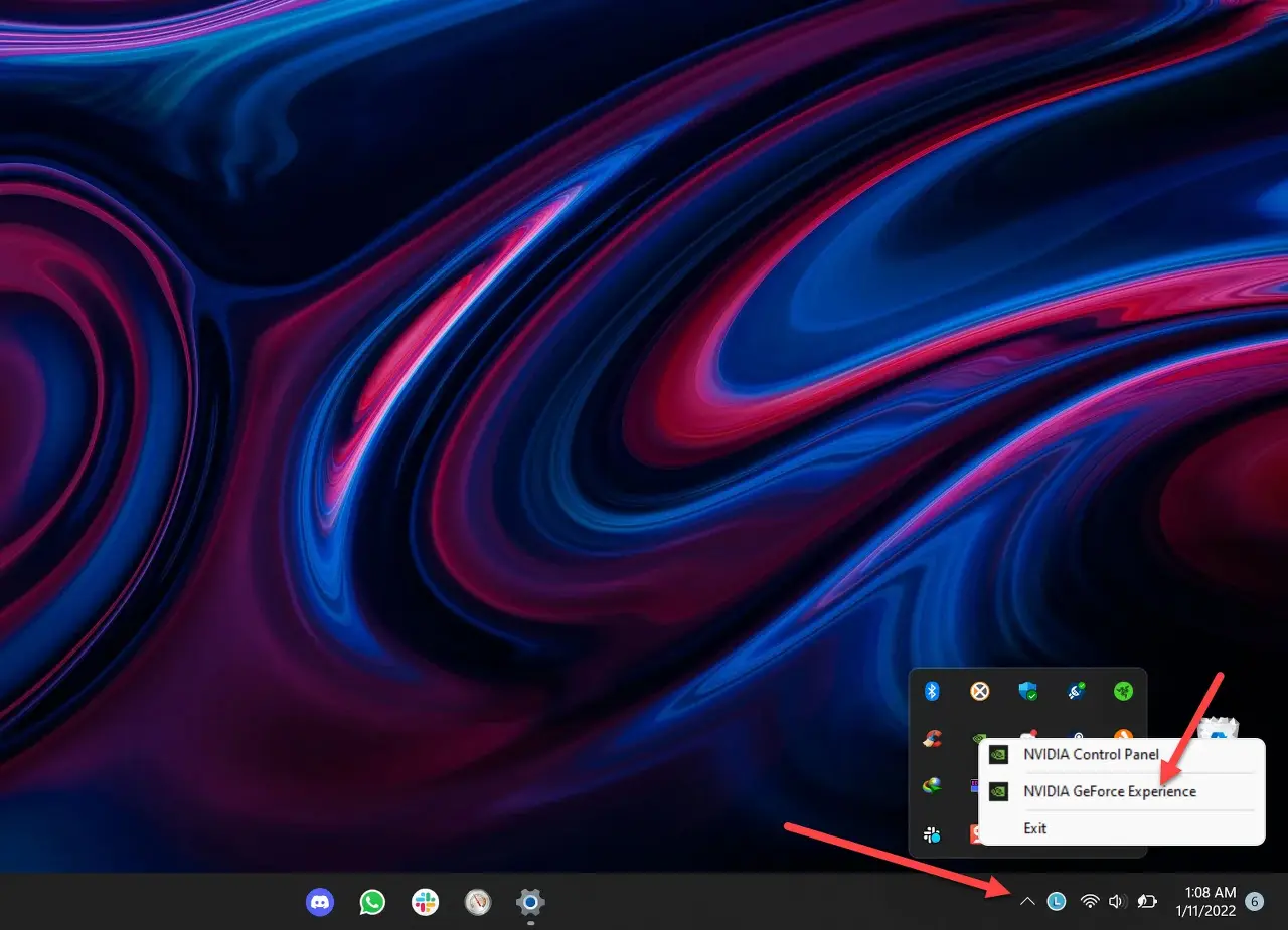 - 오른쪽, Nvidia 로고를 클릭하고 상황에 맞는 메뉴에서 "Nvidia GeForce Experience"를 선택합니다.