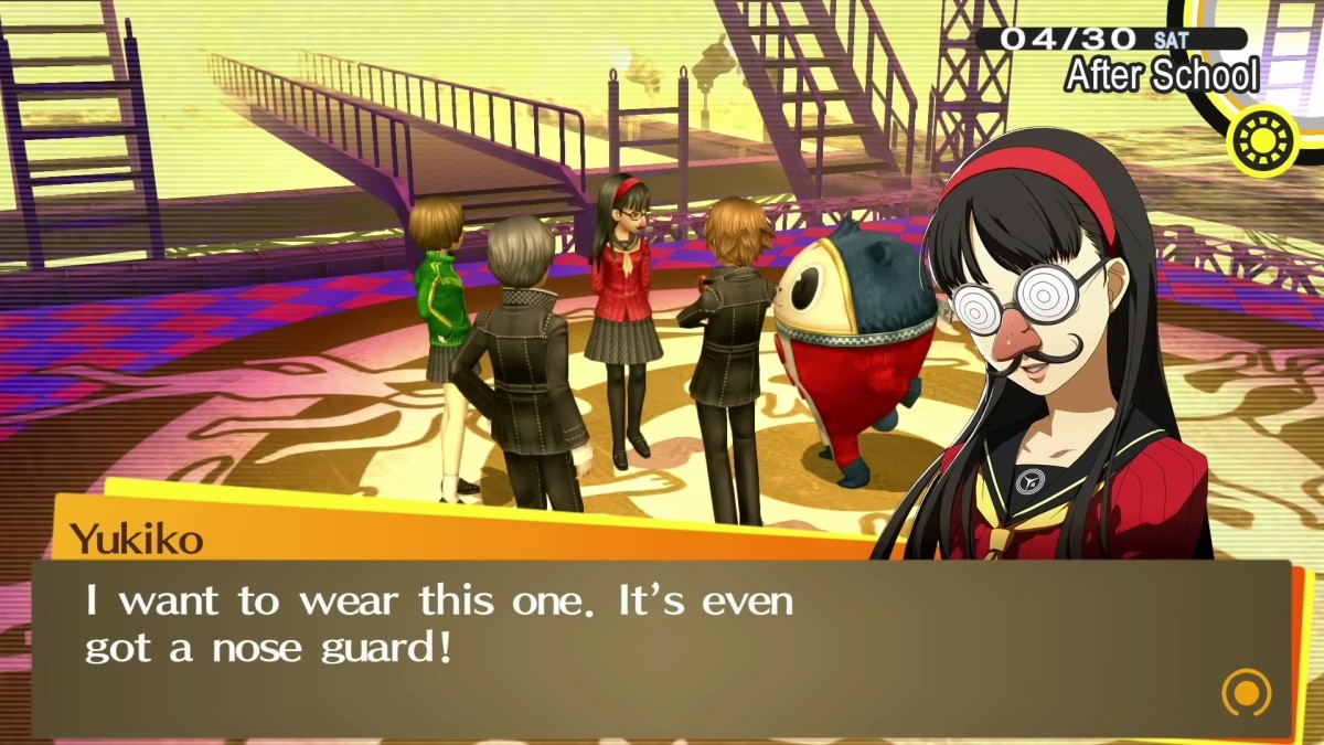 소셜 링크를 시작하면 Yukiko는 월요일, 화요일, 수요일, 목요일, 때로는 일요일에 함께 어울릴 수 있습니다. 단, 비가 오는 날에는 그녀를 만날 수 없습니다. 평일에는 교실동 1층, 일요일과 공휴일에는 남쪽 상점가에 있습니다.
