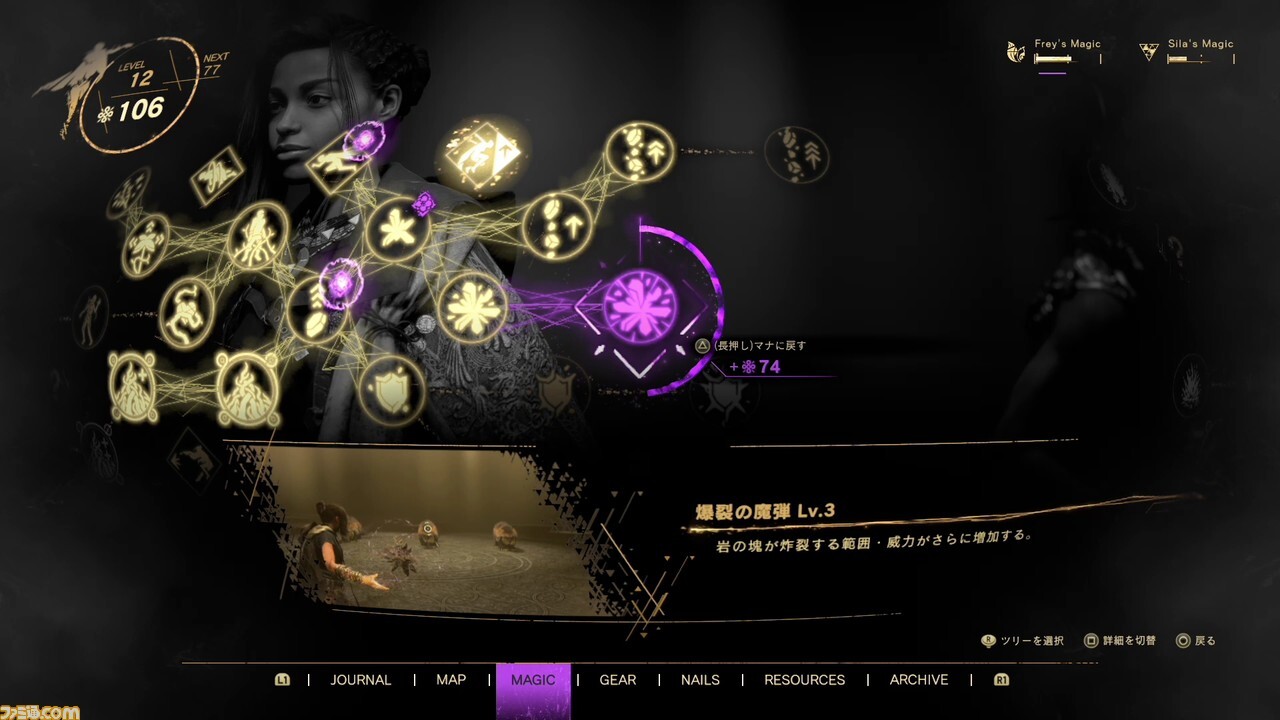 프레이의 능력은, 망토나 액세서리 외에, 네일에서도 강화 가능. 프레이의 발톱에 특수한 모양을 그리는 것으로, 마법을 강화하는 엄청난 효과가 부여된다. 네일을 그리려면 네일 레시피와 브레이크 결정이 필요합니다. 전자는 보물상자 등에서 입수할 수 있고, 후자는 적을 쓰러뜨리면 얻을 수 있다.