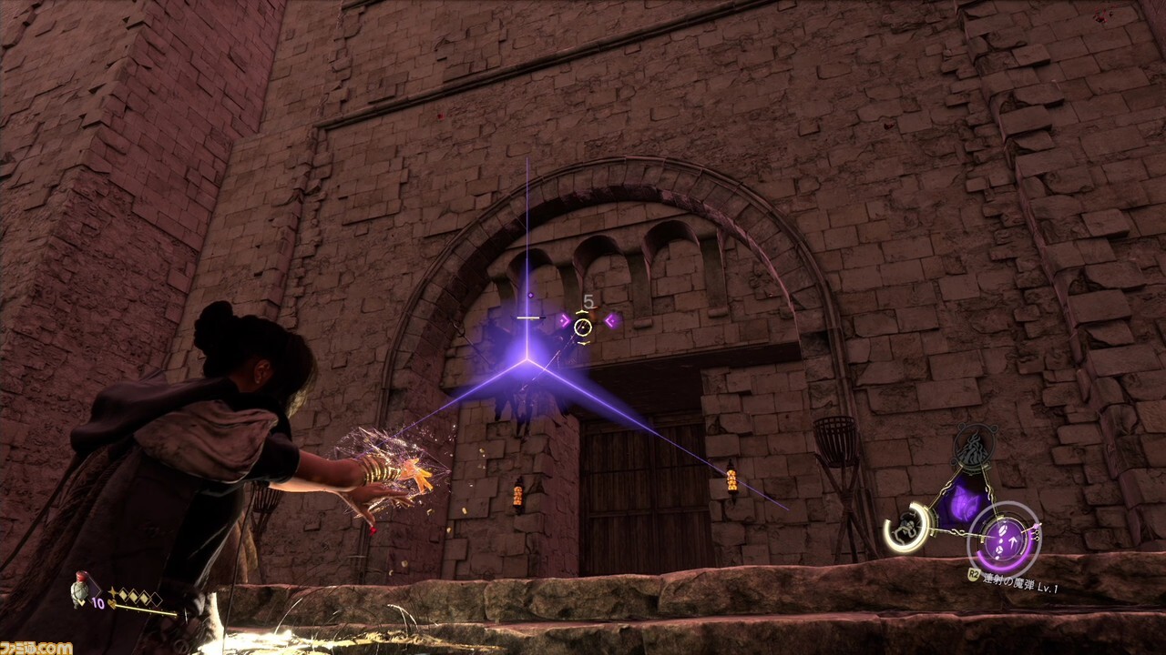 한편, 연사의 마탄은, 마법 모으고 있는 동안에는 바위의 탄을 생성해 연사해, 발동시에는 사거리의 긴 관통탄을 발사하는 마법. 강화 후에는 탄의 위력이 증가한다. 연사하는 탄을 가능한 한 히트시키기 위해, 록온한 상태에서 빠른 적이나 공중의 적에게 사용하면 유효하다.