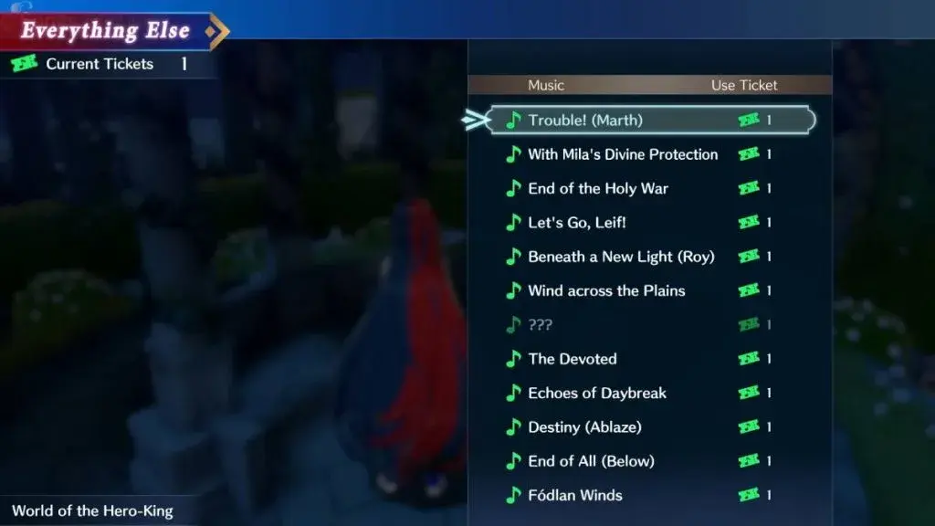 또한 Trouble!과 같은 상징적인 노래를 잠금 해제할 수 있습니다. (Marth), Beneath a New Light(Roy), Fódlan Winds는 Somniel에서 들을 수 있습니다.