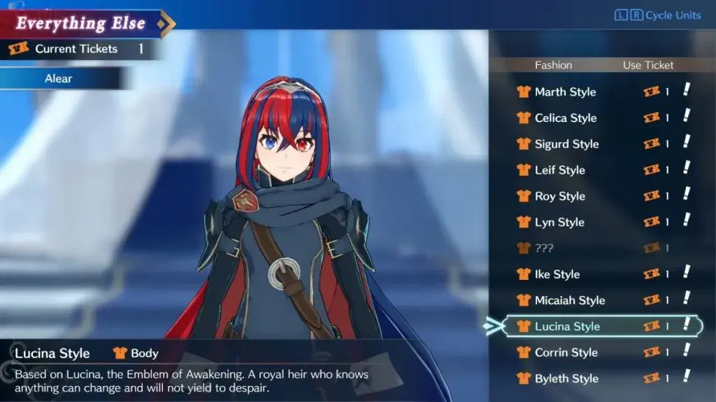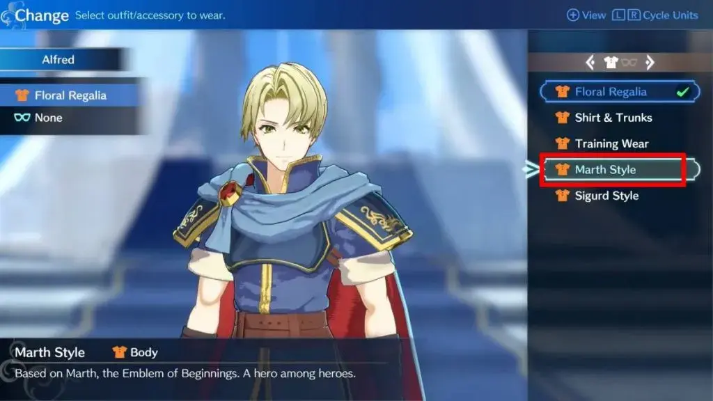 Fire Emblem Engage에서 amiibo 복장을 장착하려면 Somniel의 부티크로 이동하여 복장을 선택하십시오.