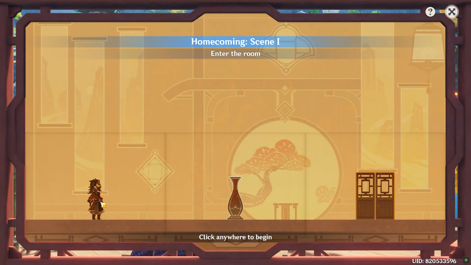 - 장면이 시작되면 주인공이 하단 중앙 타일 에 도달할 때까지 기다립니다 .