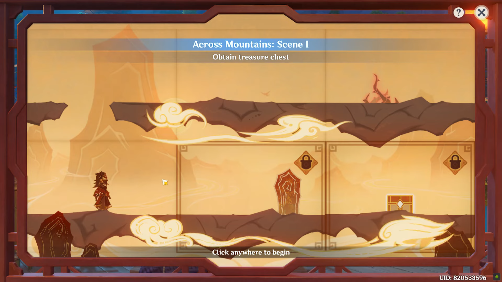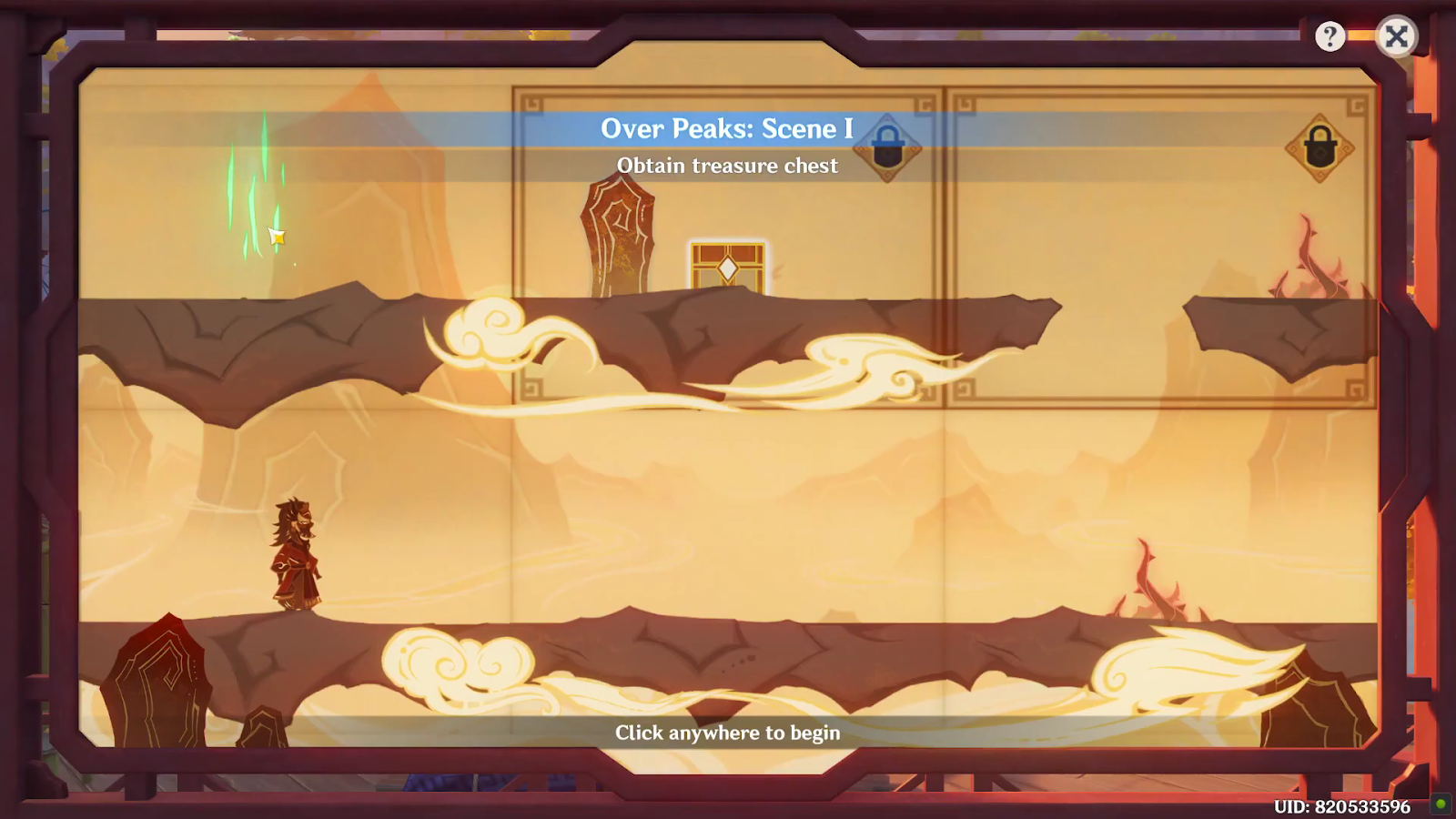 장면 1을 마치 려면 주인공 이 보물 상자에 도달 해야 합니다 .