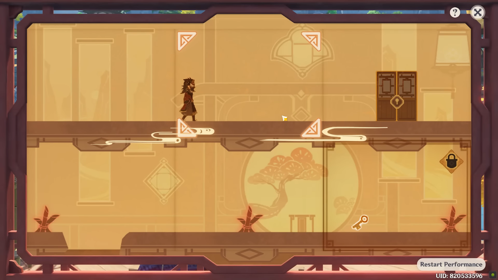 오른쪽 하단 타일에 자물쇠 기호가 있는 열쇠가 있는 하단 타일 에는 3개의 함정 이 있습니다.