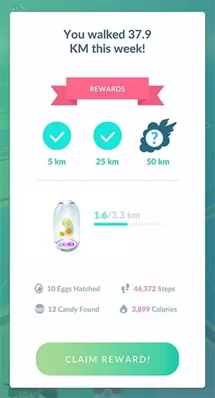 피트니스 보고서는 매주 트레이너에게 전송되어 부화한 알의 수와 파트너 포켓몬이 찾은 사탕에 대한 정보를 제공합니다. 또한 총 걸은 거리, 걸음 수, 칼로리 소모량을 제공합니다.