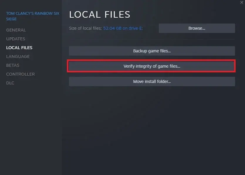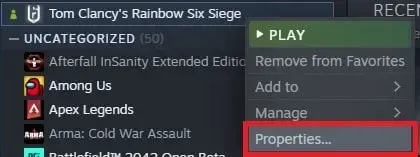 - 손상된 게임 파일 이 있는 것은 Rainbow Six Siege가 지속적으로 충돌하는 가장 일반적인 이유 중 하나입니다. 다행스럽게도 Steam 에는 손실되거나 손상된 파일을 복구할 수 있는 내장 옵션이 있습니다 . " 게임 파일의 무결성 확인... "