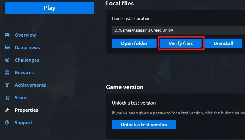 - 여기 에 게임 파일의 무결성 확인 옵션이 표시됩니다 . 그것을 클릭하십시오.