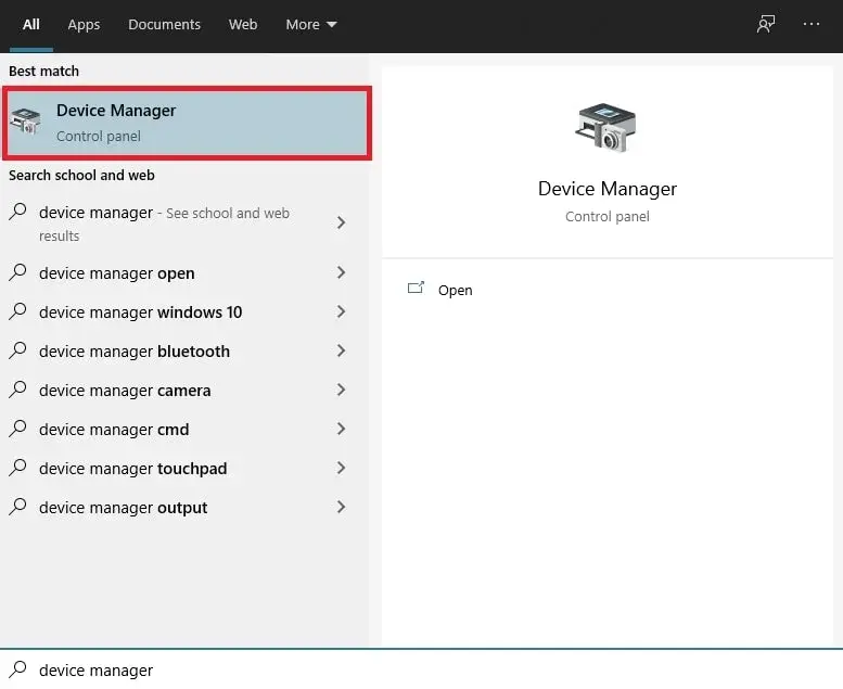 - Windows 시작 메뉴 를 열고 장치 관리자 를 입력 합니다.