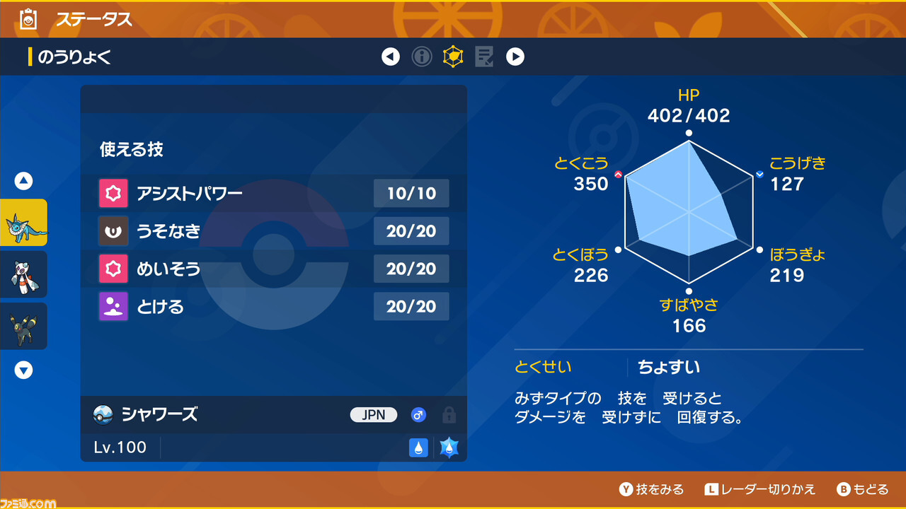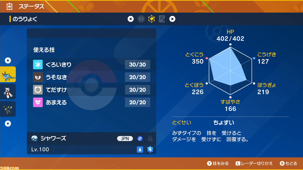 또한 특성 "조금"로 보지 타입의 기술을 무효화 & 회복 할 수있는 점도 우수. 그렇다고는 해도 타입의 샤워즈에 대해서 일부러 타입의 기술로 공격은 해 오지 않을까 생각했지만, 실제로 “하이드로 펌프”를 사용되는 장면은 적당히 있었다.