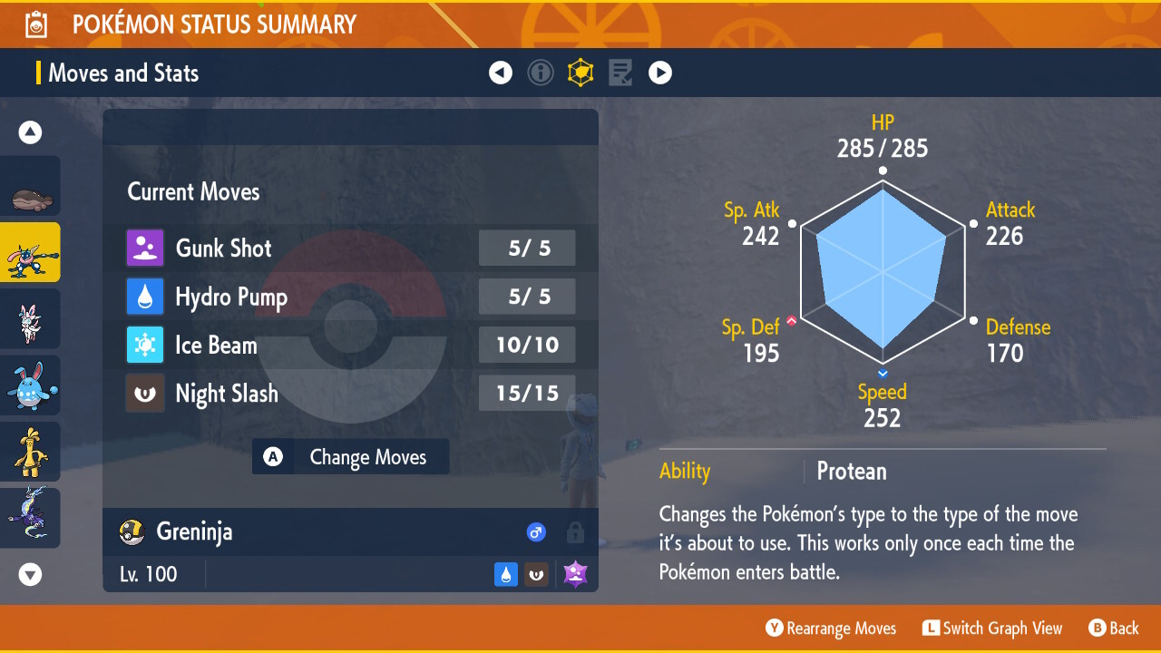 Pokemon Scarlet & Violet Greninja 이동 및 통계
