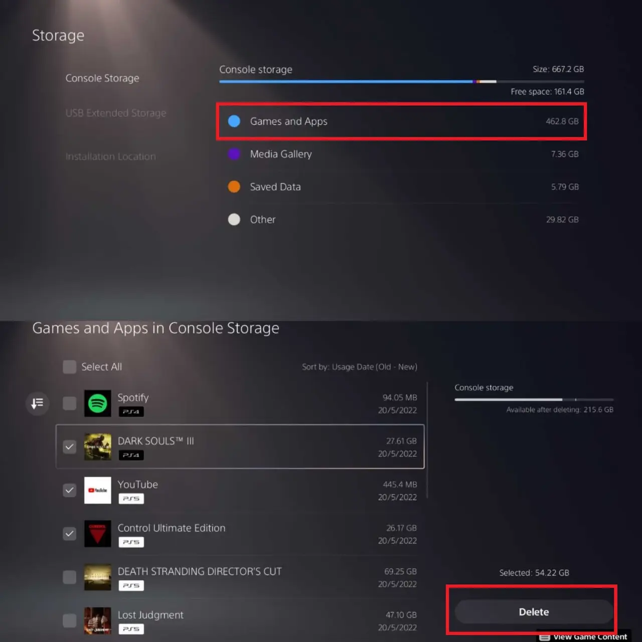 - 필요하지 않은 불필요한 게임이나 앱을 삭제 하고 PS5에서 저장 공간 을 확보하세요.