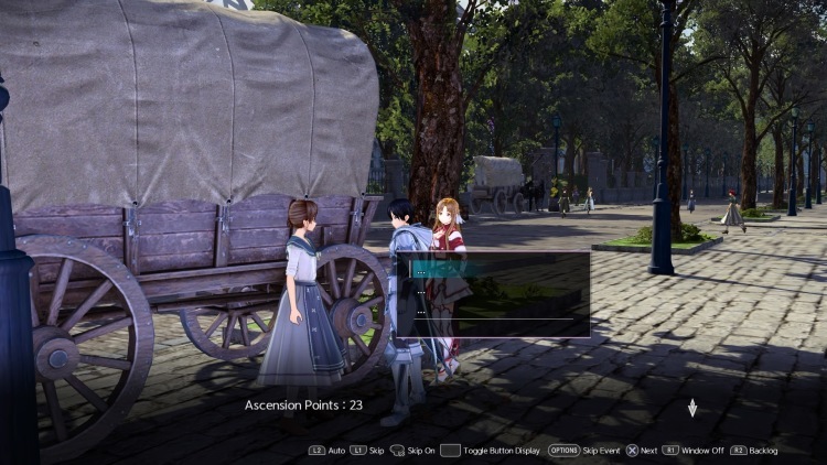 | 나쁜 징조 이제 게임이 열렸습니다. Kirito's Tent와 데이트 및 기록 메뉴를 포함한 다양한 기능을 잠금 해제했습니다. 이제 더 많은 기능이 잠금 해제되었으므로 자세한 내용은 다른 섹션을 훑어볼 수 있습니다. 아트 코드의 경우, 자신이나 파티원이 전투에서 행동을 할 때 "기록"되어 아트 코드 또는 아트 코드 내의 세그먼트로 추가될 수 있습니다. 스킬을 자주 전환하고 수동으로 전투에서 스킬을 자주 사용하는 것이 좋습니다. 자세한 내용은 아트 코드 및 아트 빌드 를 참조하세요. 팀 컴프를 시작할 때는 Asuna, Lisbeth, Sinon을 추천합니다. 기술을 갖추는 것을 잊지 마십시오. 계속하려면 마차, Sothercrois Empire로 이동하십시오. |
