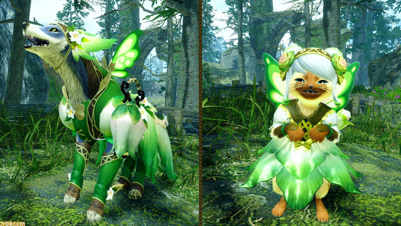 공식 사이트나 SNS에서 도움이 되는 사냥 기술을 해설하고 있는 그림 두루마리 「사냥의 인도서」에 등장하고 있는 캐릭터나, 그 그림사이기도 한 접수양의 미노토가 될 수 있는 거듭 착용 장비가, 유료 다운로드 컨텐츠로 등장.
