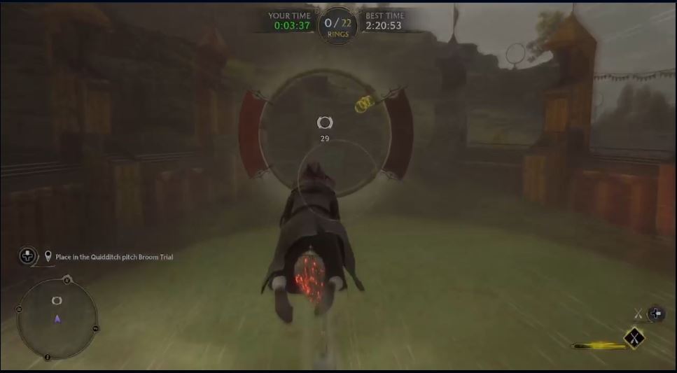 유출은 또한 짧은 2분 비디오 에서 날아다니는 퀴디치 미니 게임을 특징으로 하지만 이전에 확인된 바와 같이 골든 스니치는 없습니다. 녹화에는 플레이어가 빗자루를 타고 하늘의 다양한 고리를 최단 시간에 날아가는 미니 게임에 참여하는 모습이 담겼다.