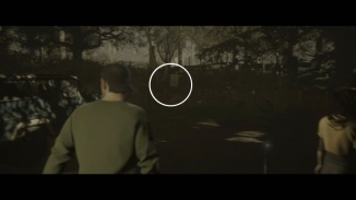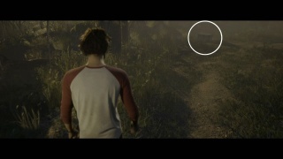 폭풍 대피소에 도착하면 앞으로 진행하십시오. 짧은 산책 후 Laura가 자동으로 단서를 집는 짧은 장면이 재생됩니다 [Camp History Clue #1 – Bloodied Collar] .