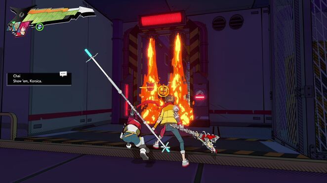 일단 창문을 통해 뛰어내리면 우리의 '동맹'이 우리가 이전에 구조한 고양이(808)를 통해 우리에게 말을 걸어왔다는 것을 알게 될 것입니다.그들은 무언가에 대해Chai의도움을 원하고 우리가시설에서 탈출하는 데 도움을 줄 것입니다. 지금부터808 은Chai옆에 머물면서트랙의비트를 따라가는 데 도움이 되는 메트로놈 역할을 할 것입니다.공격을 수행해야 할 때).
