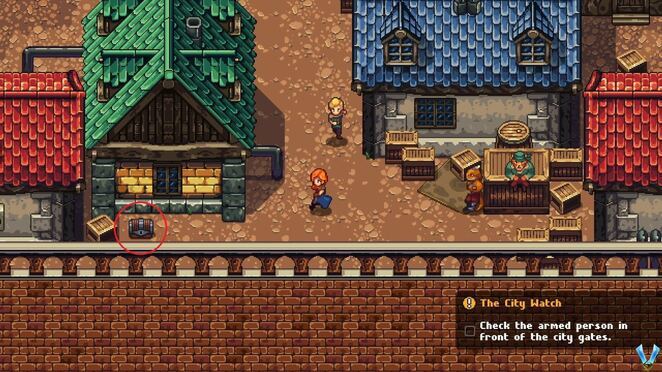 제어권을 되찾으면 왼쪽에 광장이 있습니다. 여기에서 첫 번째 집에 들어가고(우리가 통제권을 되찾았을 때 우리 위에 있음) 스파클을 확인하여 25a 를 찾으십시오 .