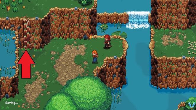 슬로프를 돌아가서 다음 지역으로 왼쪽으로 가십시오. 여기 폭포 아래에서 왼쪽으로 가서 Dirty Wool 을 잡습니다 . 당신은 또한 우리 아래 동굴을 볼 수 있습니다. 탈출구 같은데요? 결국 알게 될 것입니다. 지금은 왼쪽의 틈을 가로질러 점프하고 그렇게 하는 즉시 왼쪽으로 올라갈 수 있는 벽이 보일 것입니다.
