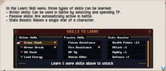 제어권을 되찾으면 계속 진행하여 Lenne과 Robb이 새로운 기술을 배우도록 합니다. 여기에서 Wywyan 보스전에서 얻은 Grimoire Shard 덕분에 하나를 잠금 해제할 수 있습니다. 개인적으로 나는 Lenne에게 TP Up 을 배우게 하고 Robb에게 AGI Up 을 배우게 했습니다. 그는 또한 +1 ATK를 얻었고 Lenne은 거의 모든 시작에서 업그레이드를 받았습니다.